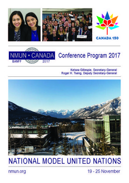 At NMUN•Canada, delegates discussed global issues and celebrated the sesquicentennial: Happy 150th Birthday Canada – the true north strong and free! The cultural tours and several committee topics focused on issues related to indigenous people and the environment. It recognized not only the majestic conference setting of Banff National Park, a UNESCO world heritage site, but also the recent Truth and Reconciliation Commission of Canada's Final Report. The conference was held in partnership with Concordia University of Edmonton.